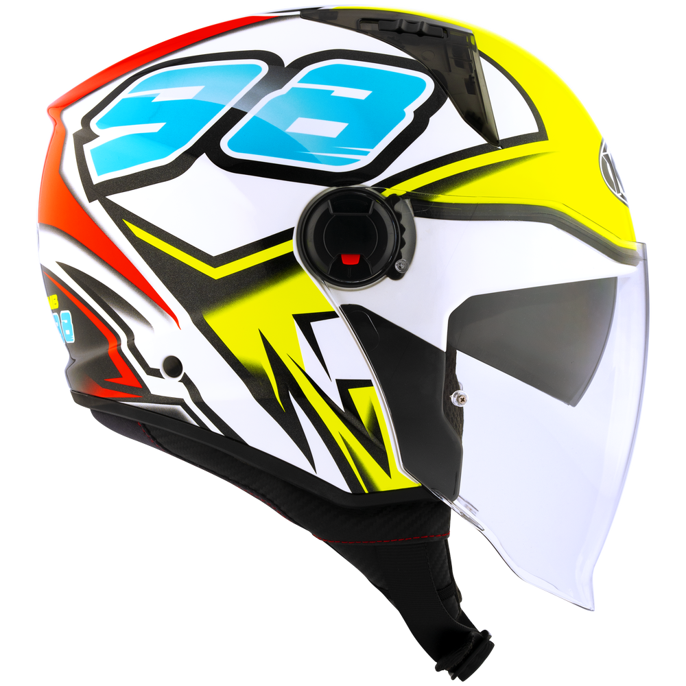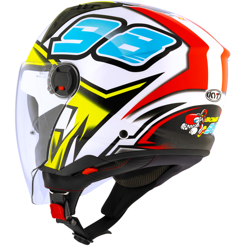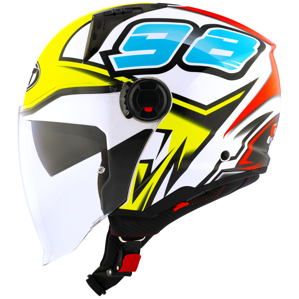 The retention system has a micrometric buckle made of metal and acetal resin. Homologations ECE 2206. Approx weight 1300 gr ± 50