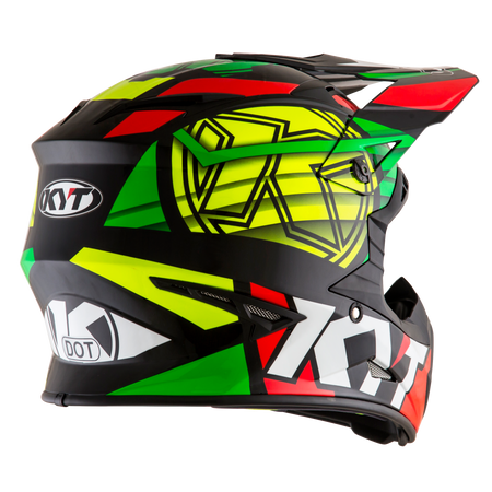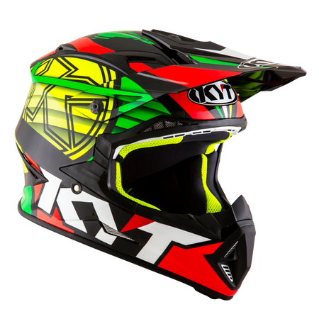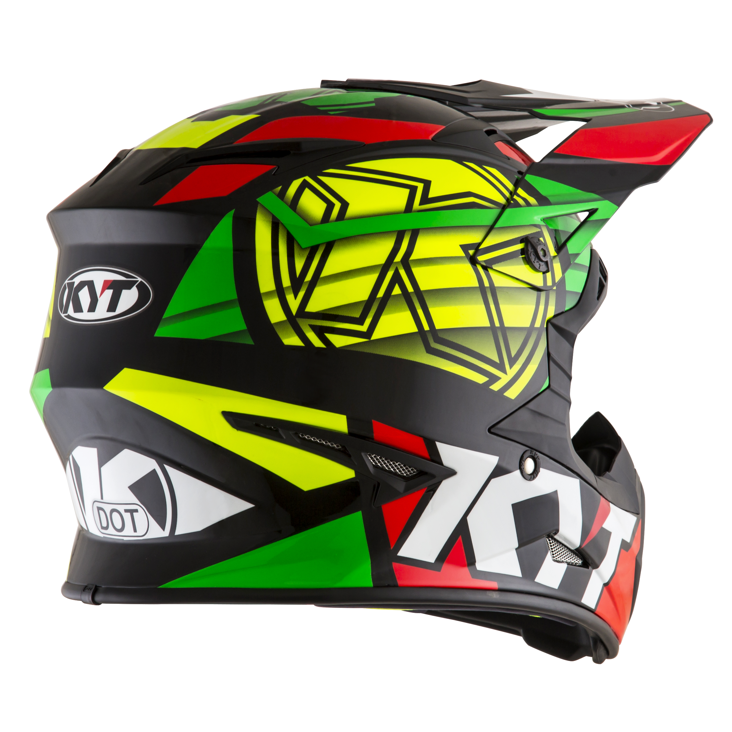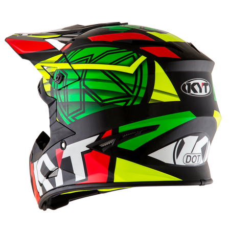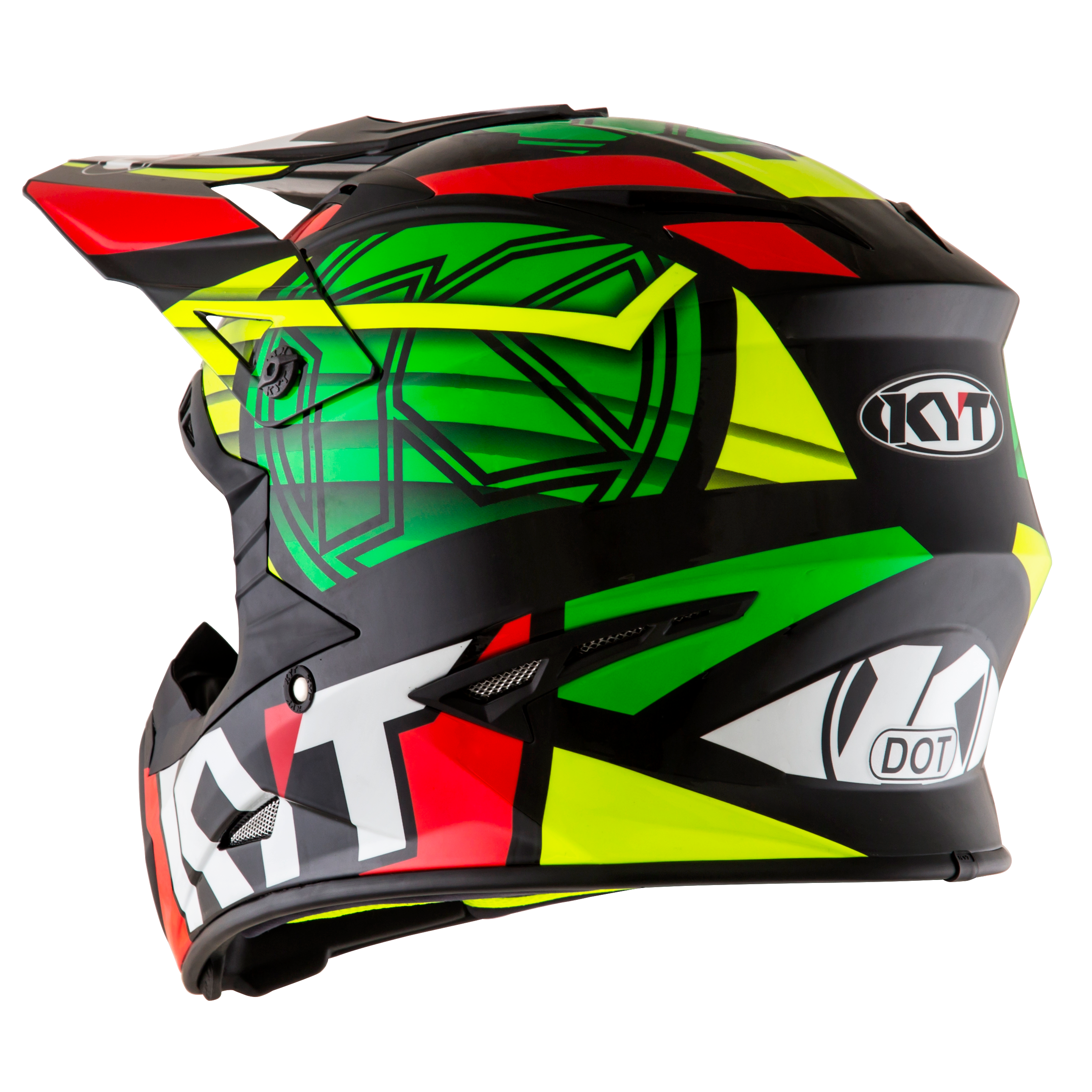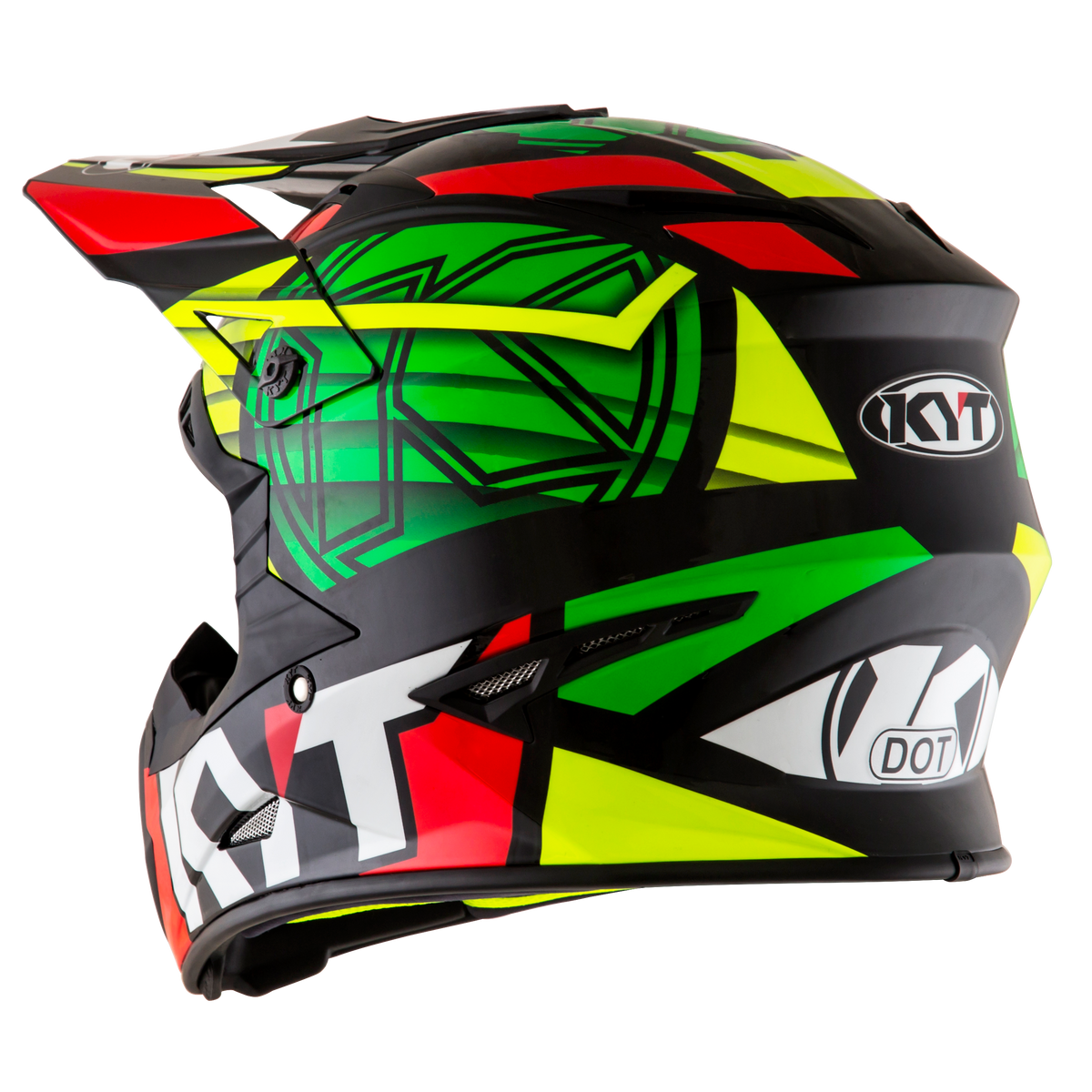 KYT's experience in the Off-Road sector, a result of the collaboration with riders and specific analysis conducted about agonistic and amatorial uses of off-road helmets, led to the design of a new captivating shell. The analysis and the consolidated experience in the resinous and plastic materials developed over the years have led to the design of shells of different thicknesses with high impact resistance. The Jumpshot is made in a single shell size.