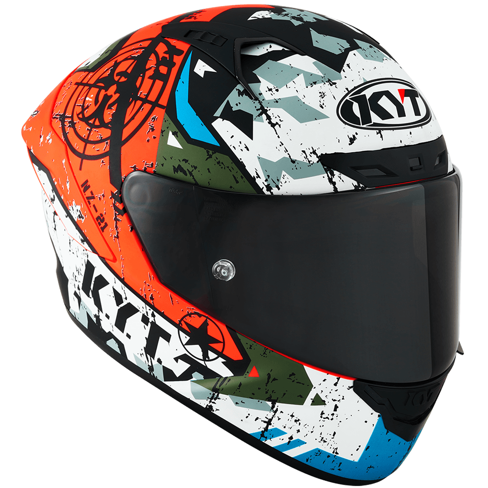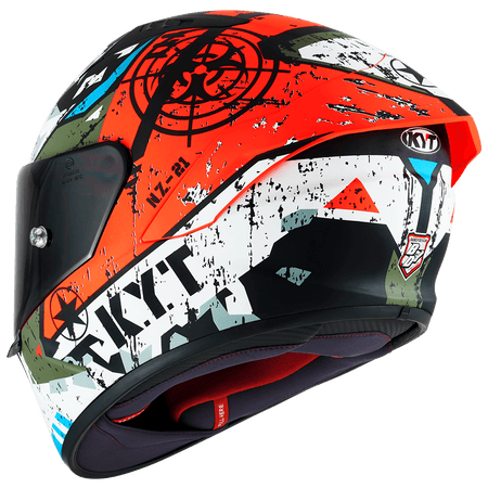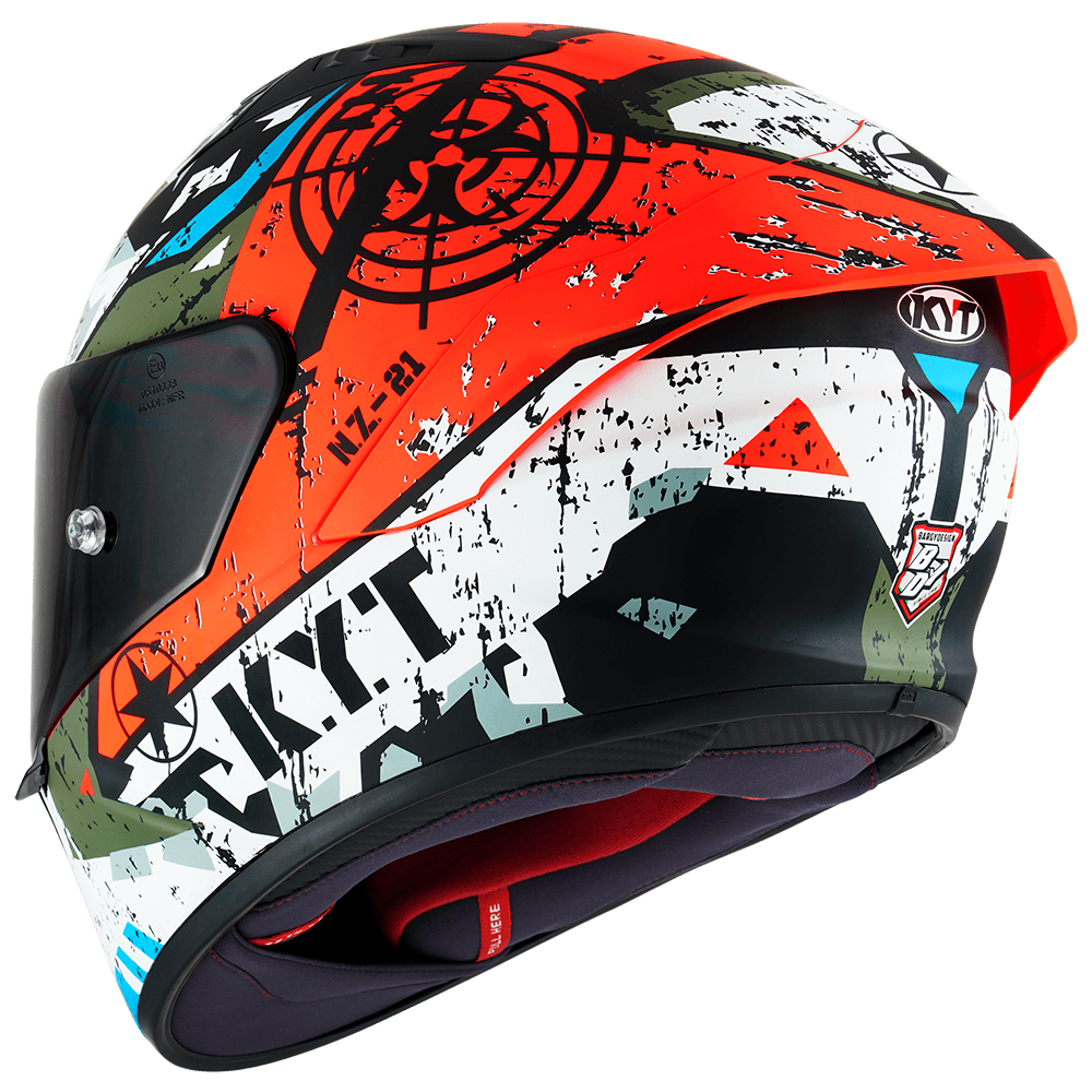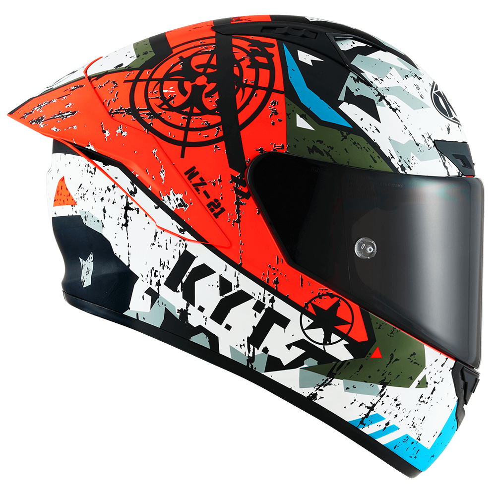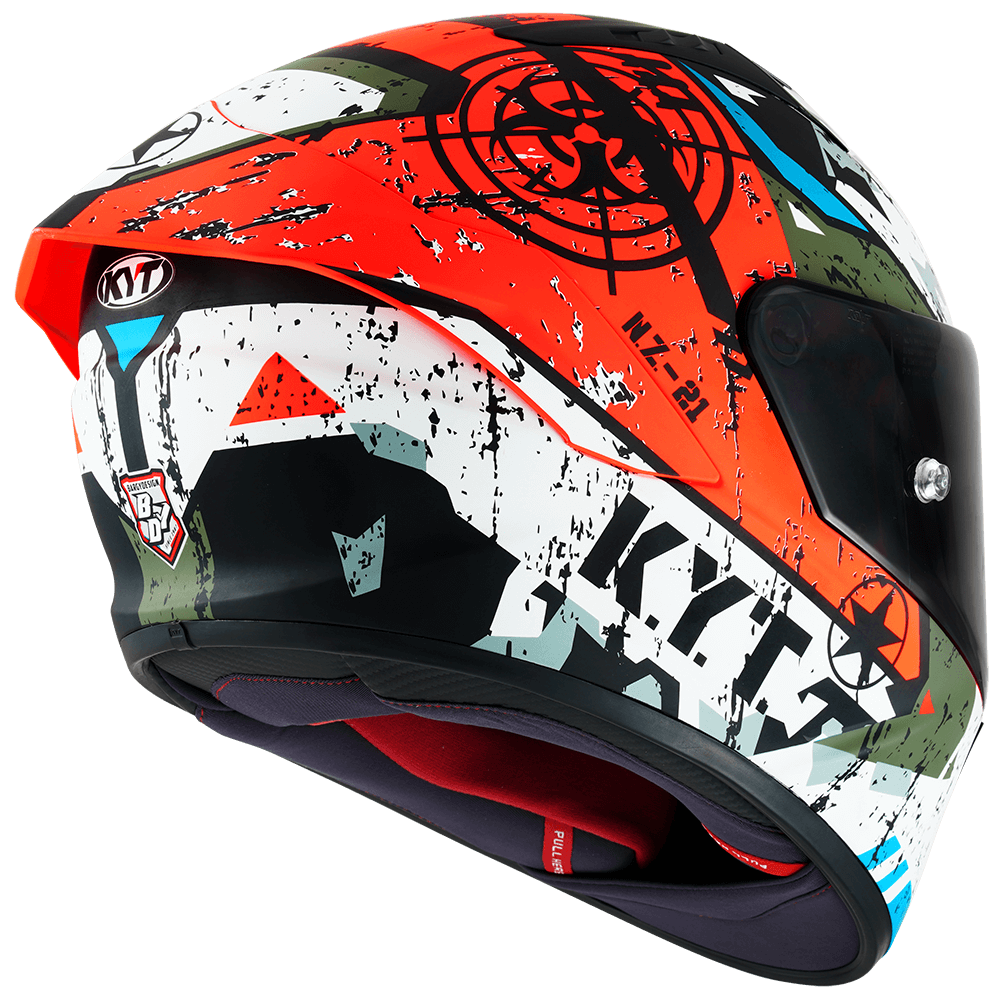 NZ-Race, the full-face, tri-composite helmet derived from KYT's experience in the world of racing. The shapes have been deeply studied, through fluid dynamic software and repeated sessions in the wind tunnel, as well as on the track with the KYT riders, to achieve the best performance in terms of aerodynamics, ventilation and comfort, while at the same time enhancing the stylistic aspect characterized, as tradition, by dynamic streamlined shapes.