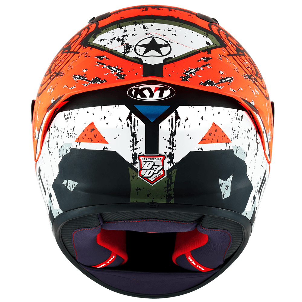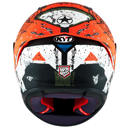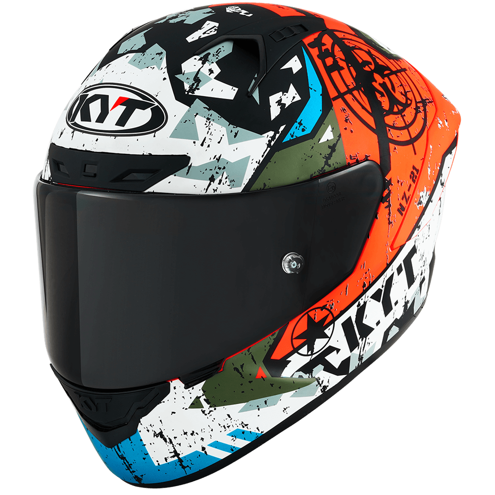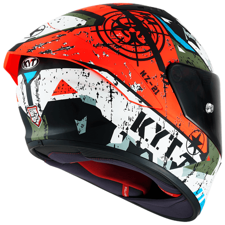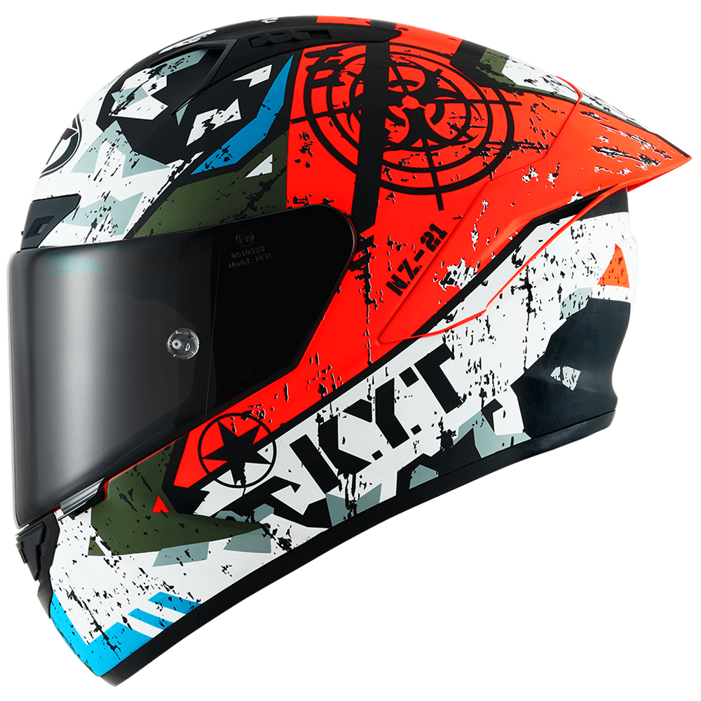 NZ-Race, the full-face, tri-composite helmet derived from KYT's experience in the world of racing. The shapes have been deeply studied, through fluid dynamic software and repeated sessions in the wind tunnel, as well as on the track with the KYT riders, to achieve the best performance in terms of aerodynamics, ventilation and comfort, while at the same time enhancing the stylistic aspect characterized, as tradition, by dynamic streamlined shapes.