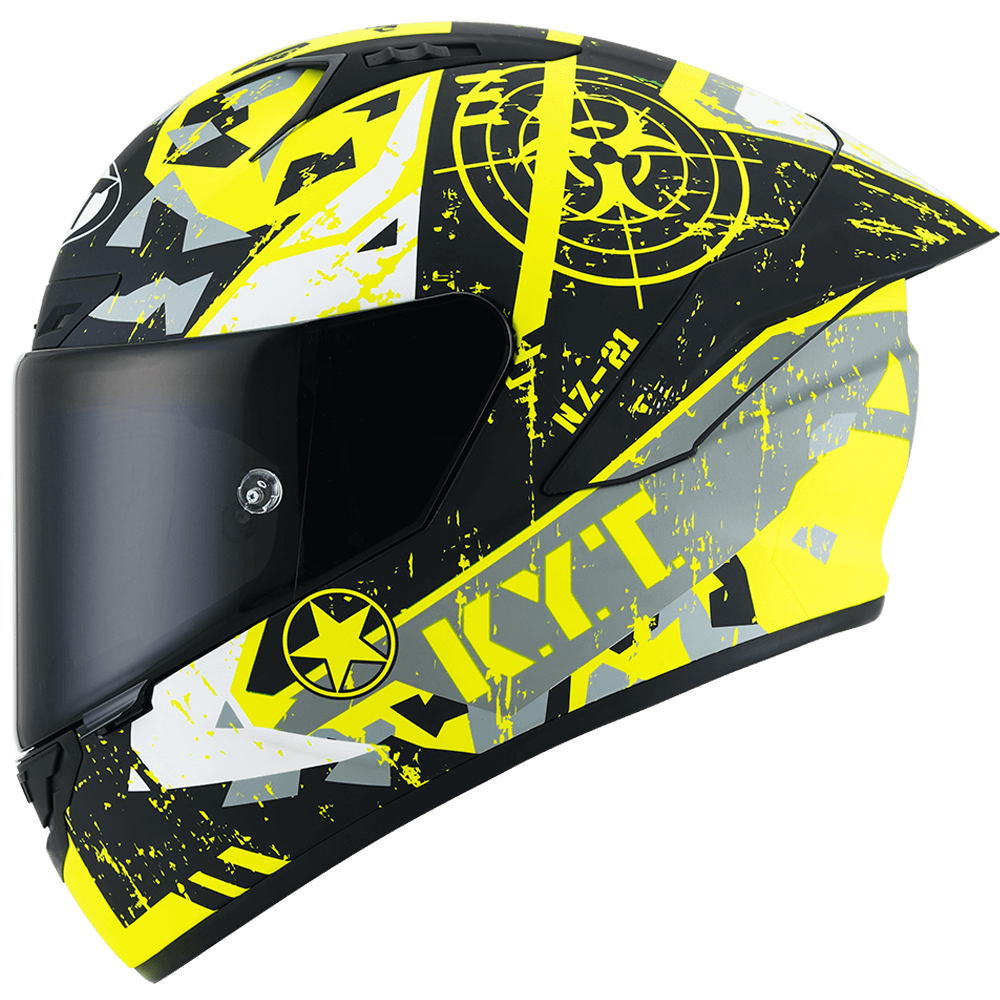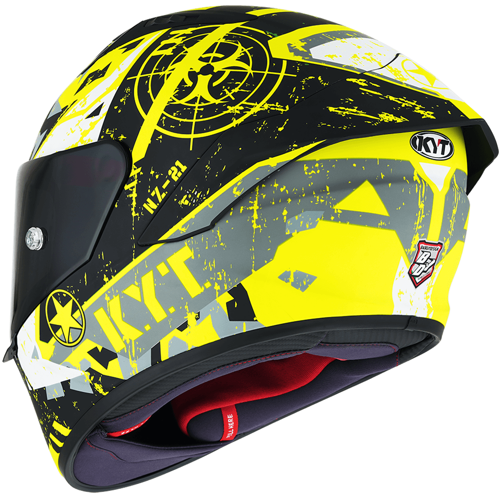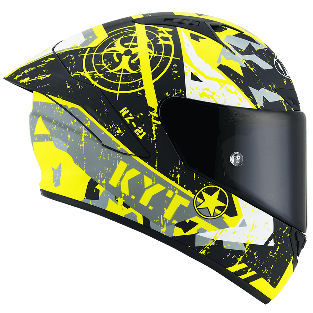 NZ-RACE, the KYT full-face helmet in tricomposite material derived from Kyt's experience in the Racing world. The shapes have been deeply studied, through fluid dynamic software and through repeated sessions in the wind tunnel, as well as on the track with the KYT riders Read more