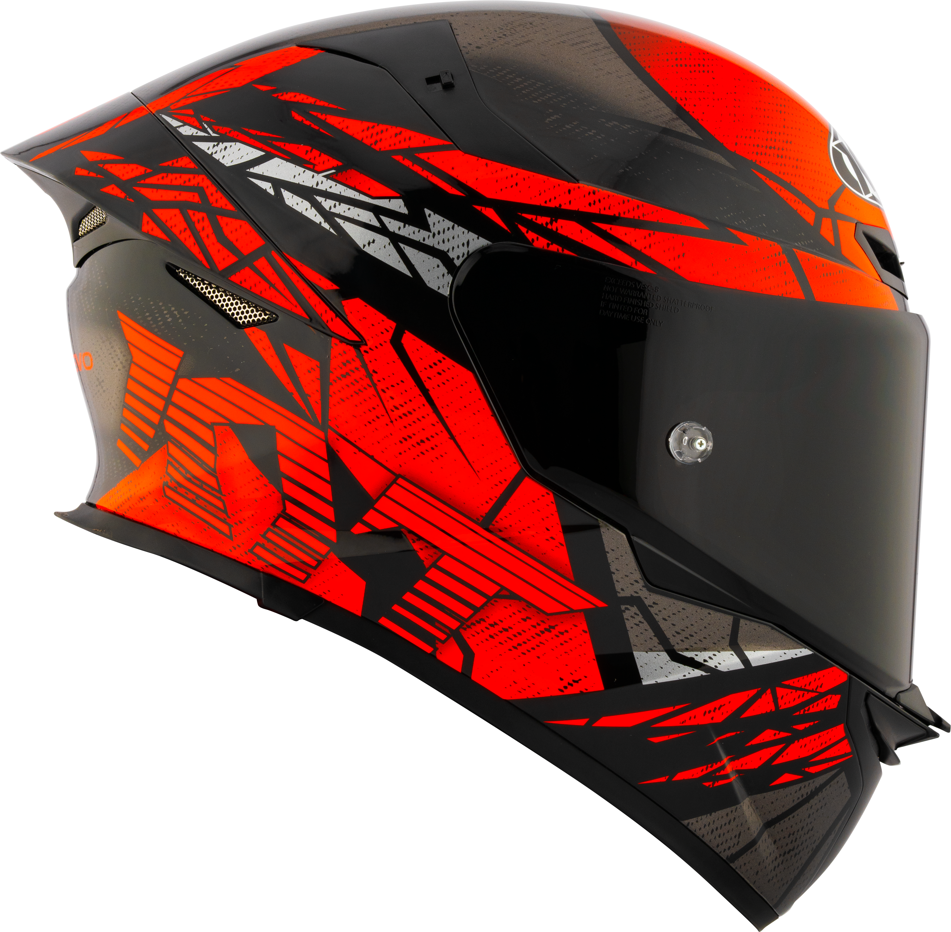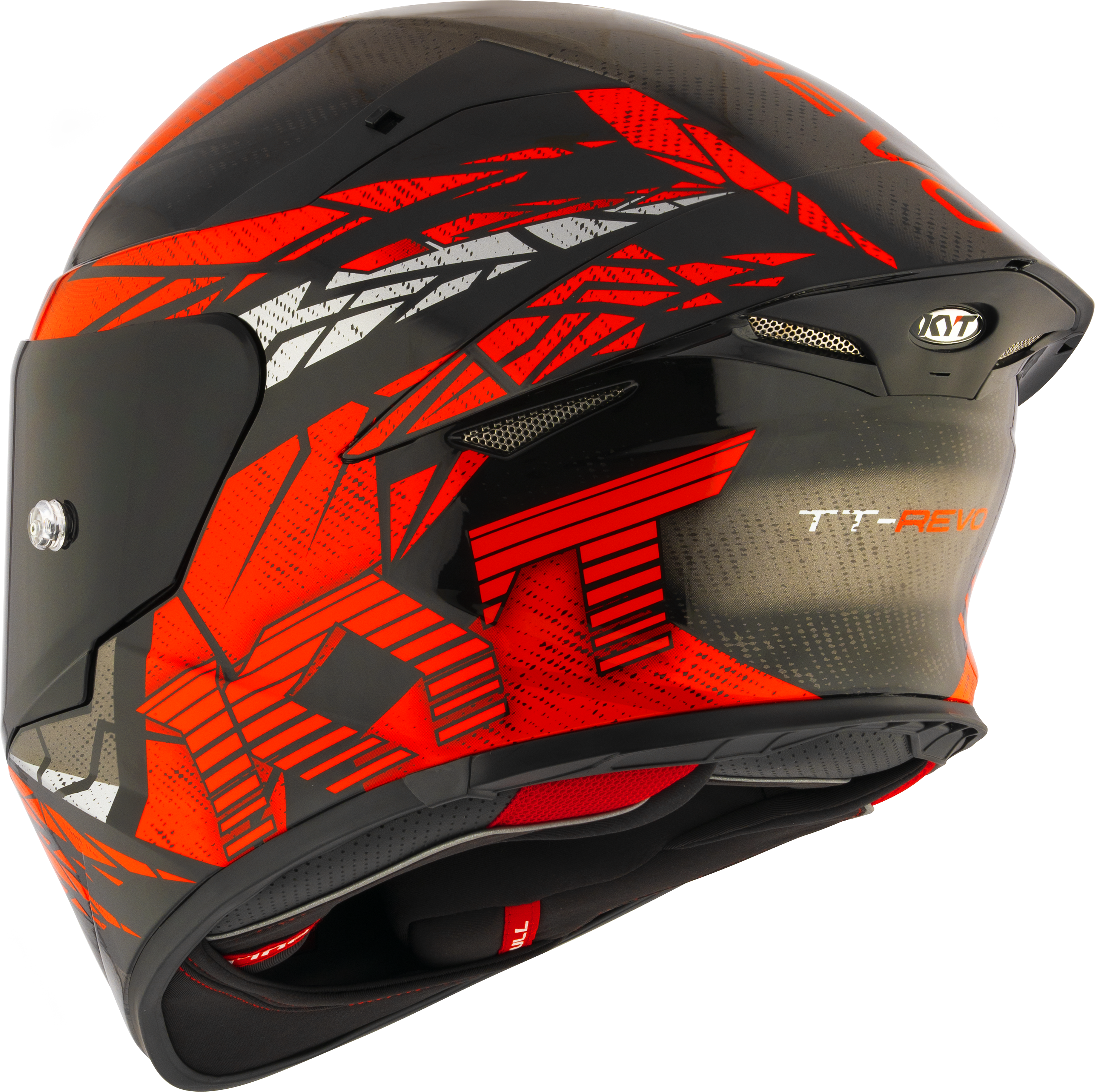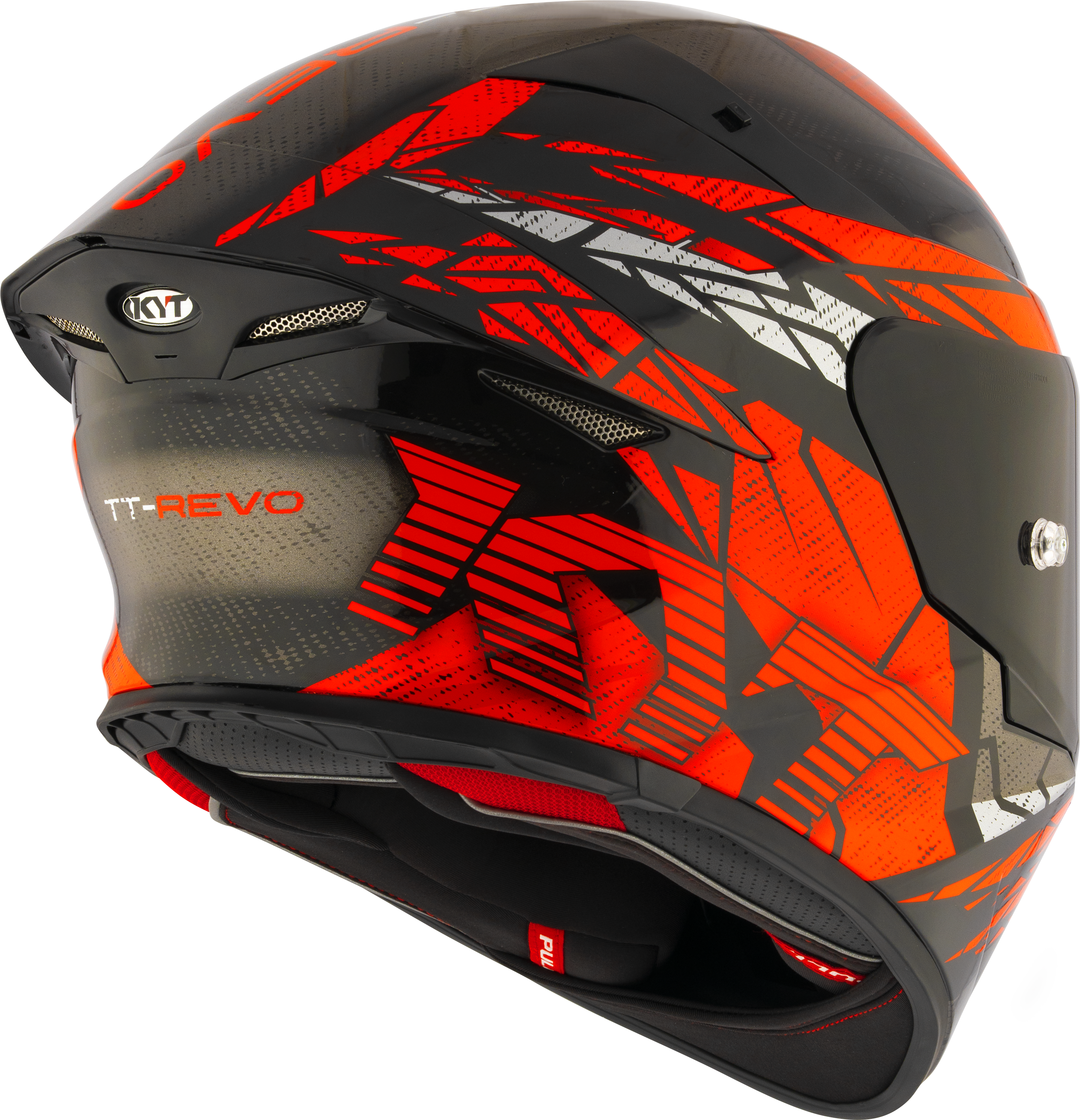 The visor is made of polycarbonate, with an anti-scratch treatment. The new system of securing the visor to the helmet, allows the removal of the visor without the use of a tool. The TT-Revo has a locking system to secure the visor while riding with the visor in the closed position. The visor of the TT-Revo is PINLOCK compatible.
