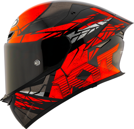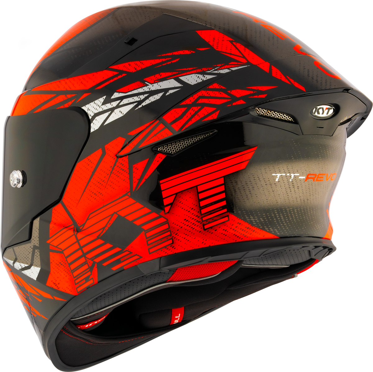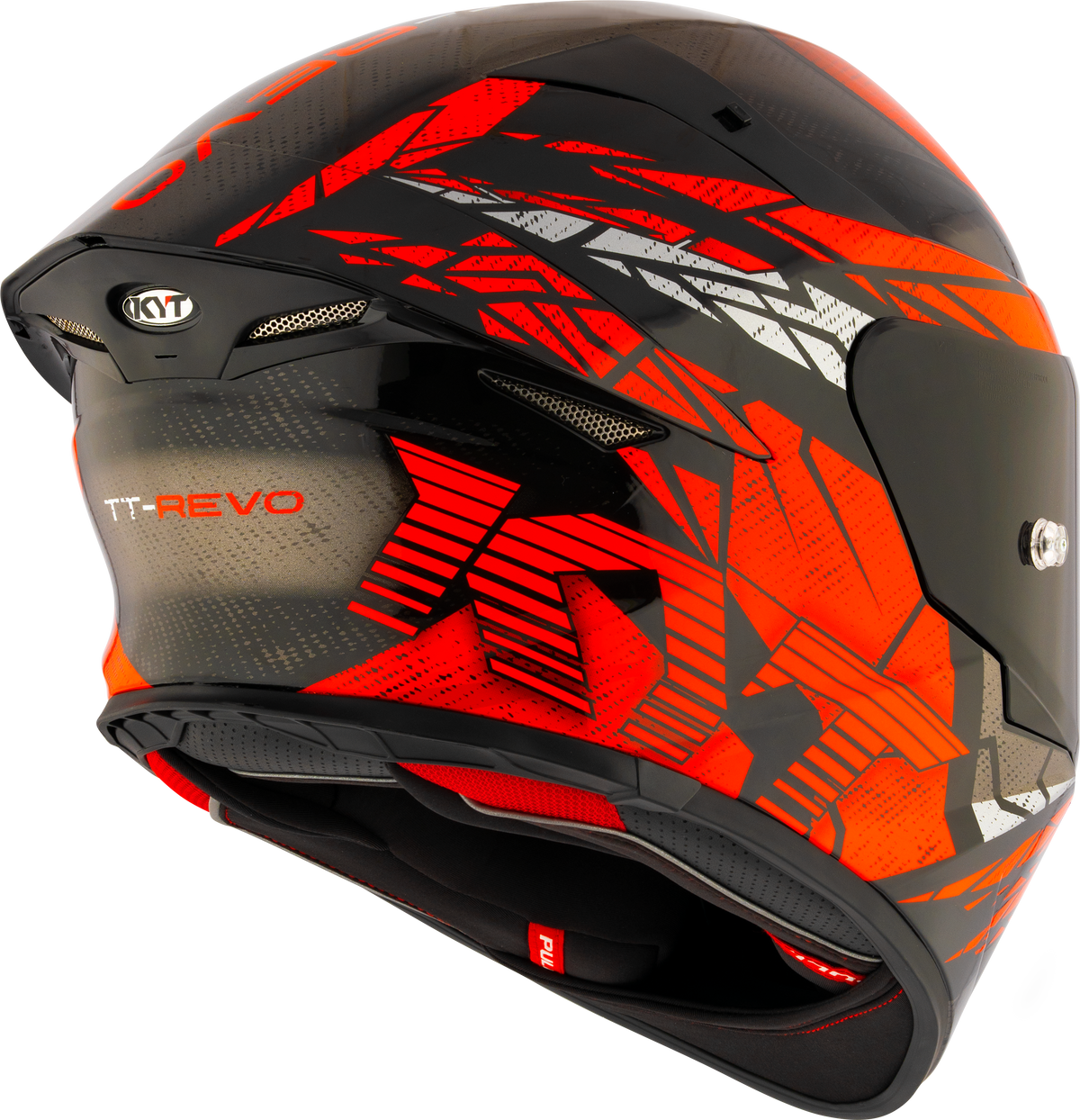 Grooved channels in the polystyrene, work in conjunction with multiple air intakes on the shell to provide optimal ventilation into the helmet and quickly exhaust out the hot air. The TT-Revo has five air intakes on the front and four air extractors under the aerodynamic spoiler.